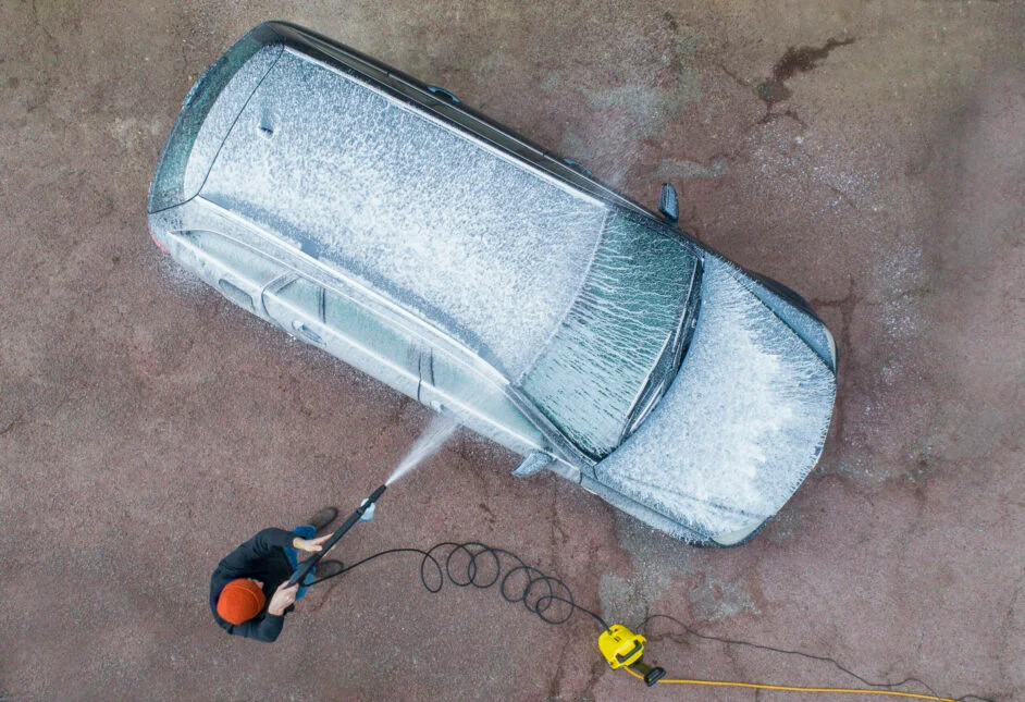 - Spray the foam onto the vehicle, starting at the top and working down to the wheels, ensuring all exterior surfaces are covered.