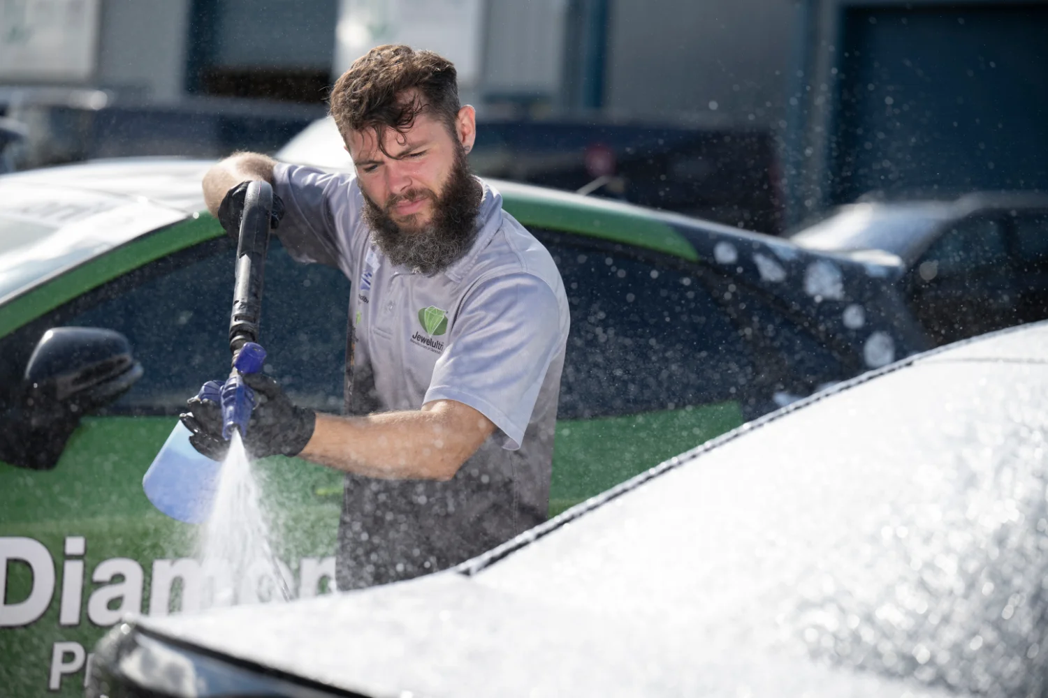 - Rinse vehicle thoroughly using a hose or jet wash. For heavily soiled areas, use a prewash like Diamondbrite Lift Off before washing with Ceramic Blast.